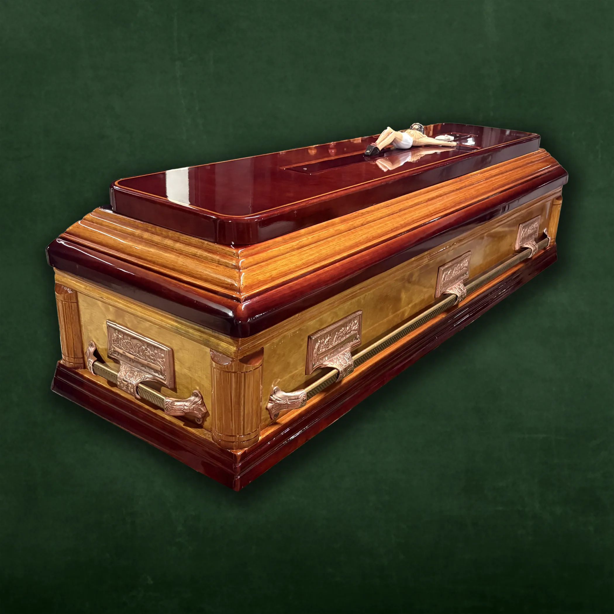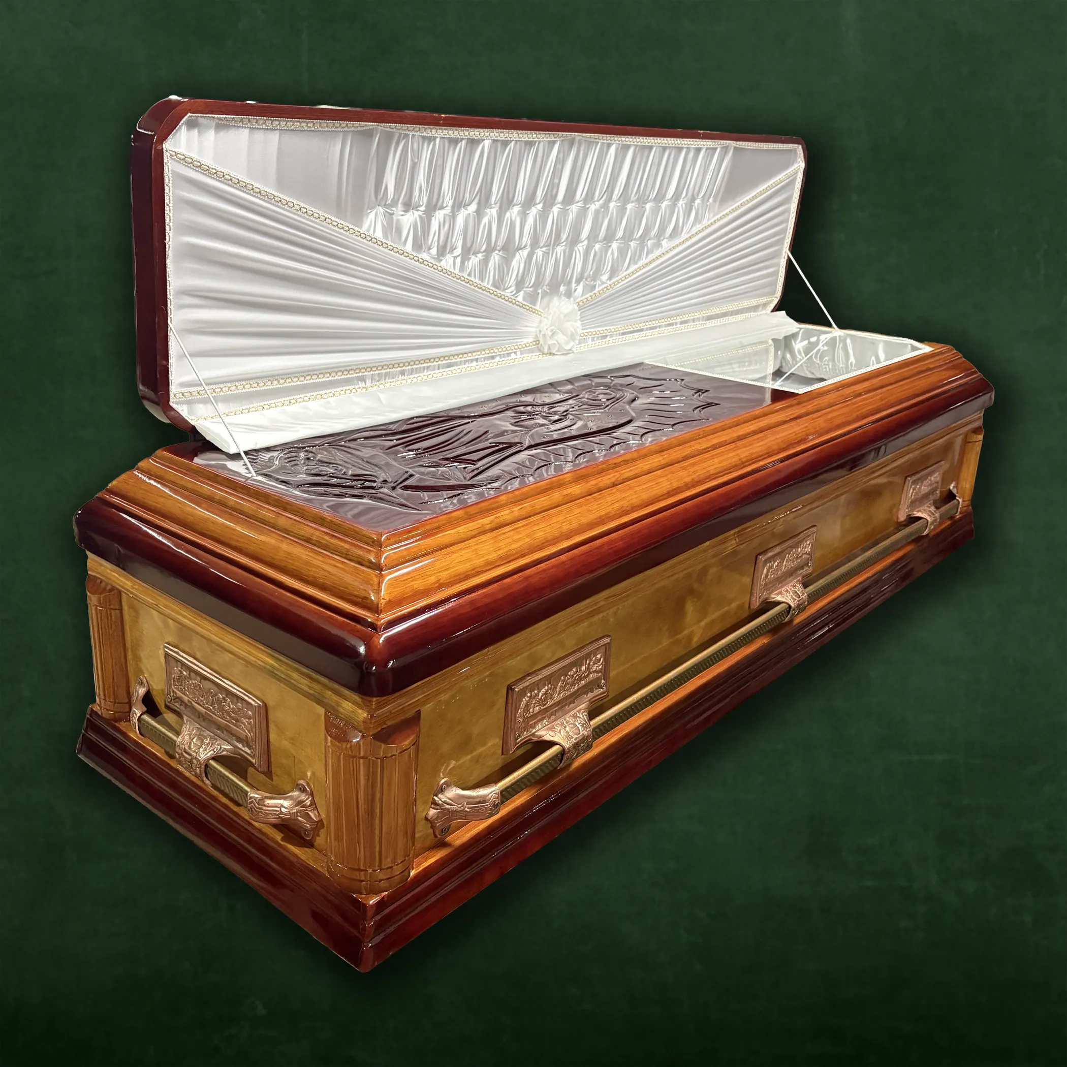 Ataúd en madera de pino modelo italiana tonos miel