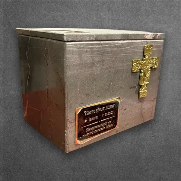 Urna de marmol estilo vestal color gris.